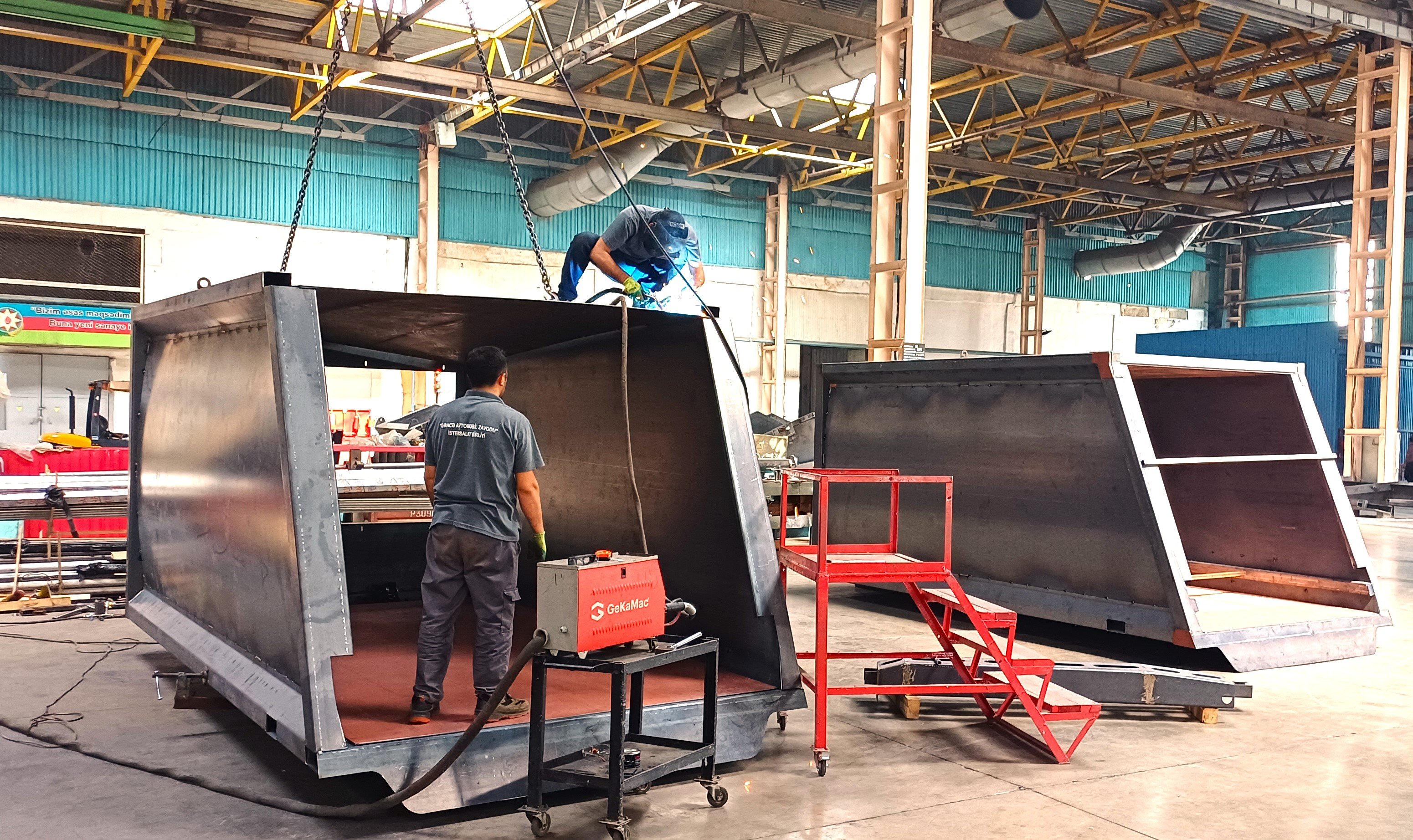 Azərbaycanın avtomobil sənayesində flaqmanlardan olan Gəncə avtomobil zavodu İstehsalat Birliyi artıq 20 ildən artıqdır ki, ölkənin istehsal sahəsində yeniliklərə imza atmaqda davam edir. 2025-ci ilin iyun ayından etibarən zavodda kommunal texnikaların konteynerlərinin yığımını 100 faiz yerli istehsal olaraq reallaşdırılmağa start verib. Belə ki, sifarişə uyğun olaraq istənilən avtomobilin bazasında müəssisədə istəkdən asılı olaraq istənilən kubametr tutumlu kommunal maşınların yığımı həyata keçirilir. Bu günədək Azərbaycan Ekologiya və Təbii Sərvətlər Nazirliyinin sifarişinə uyğun olaraq KAMAZ-ın bazasında 45 ədəd 20 kubmetr tutumlu kommunal maşınları yığılaraq təhvil verilib. Kommunal avtomobillərin konteynerləri baza hissəsindən rənglənməyə qədər müəssisədə yerli mütəxəssislər tərəfindən həyata keçirilir. Bu da onu deməyə əsas verir ki, Gəncə avtomobil zavodu istehsalat birliyində artıq texnikaların yığılması ilə yanaşı yerli istehsal sahələri də inkişf etdirilir. Bunun üçün müəssisədə ən son texnologiyalardan olar plazma və kəsmə avadanlıqları, əymə və müxtılif dəzgahlar, müasir qaynaq və digər lazımi avadanlıqlar quraşdırılıb.