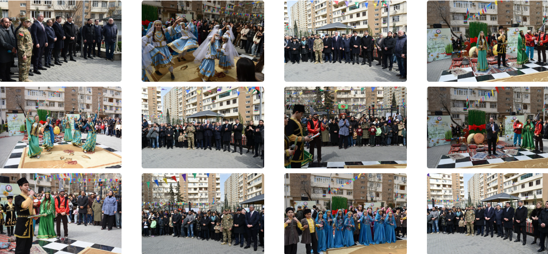 Məhəllə sakinləri, ağsaqqallar, şəhid ailələrinin üzvləri, qazilər bayram şənliyini yüksək sevinc hissi ilə qeyd edib və rəqs ediblər. Bayramda müğənnilər müxtəlif mahnılar səsləndirib, Novruzun əsas personajları olan Kosa, Keçəl və Bahar qızı toplaşanları şənləndirib və sakinlərlə birgə rəqs ediblər.Şənliyin təşkil edildiyi abad məhəllə isə bayramsayağı bəzədilib, burada Vətən müharibəsi qazisi Şamxal Ağayev tərəfindən Novruz tonqalı alovlandırılıb və əsl bayram ab-havası yaradılıb.