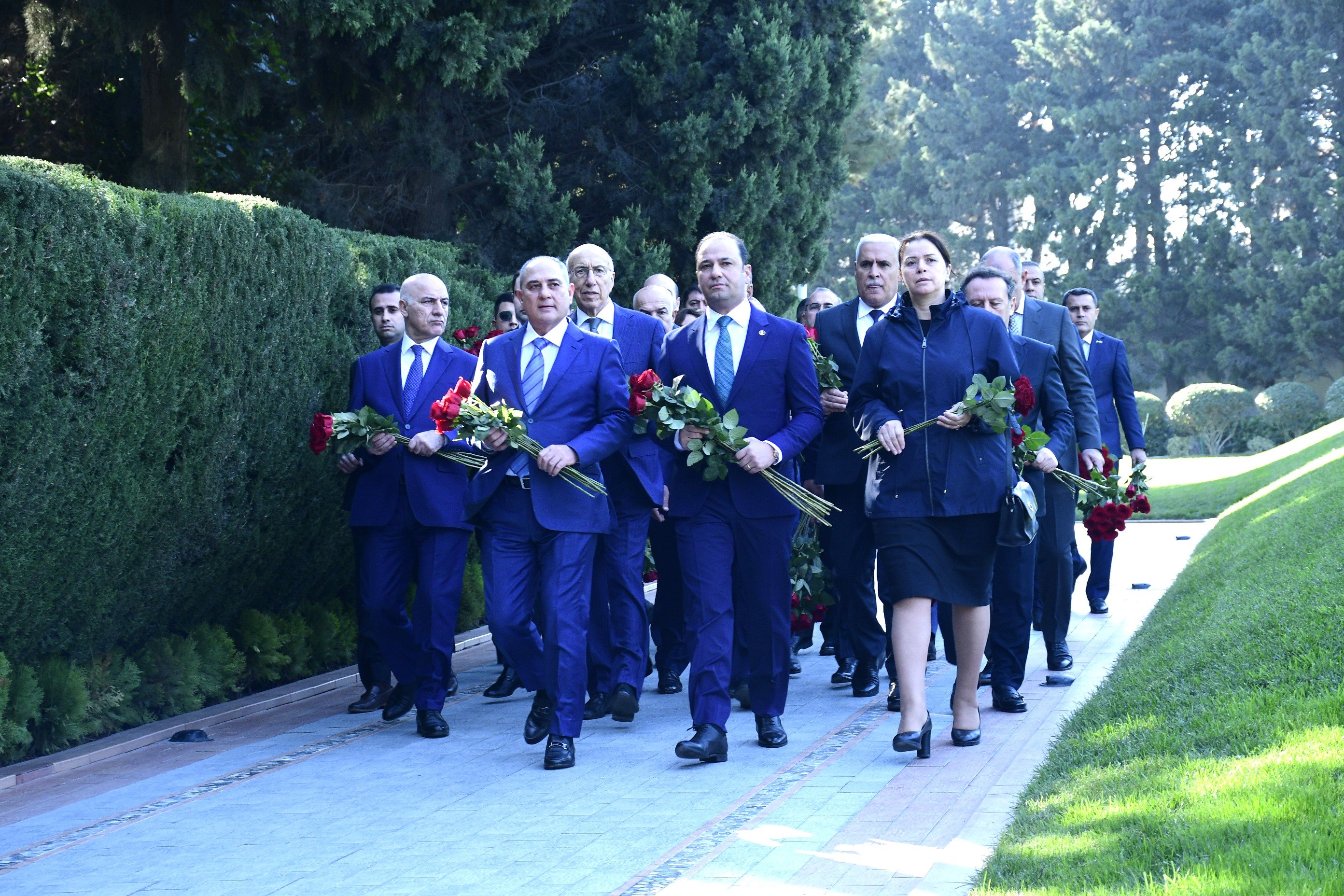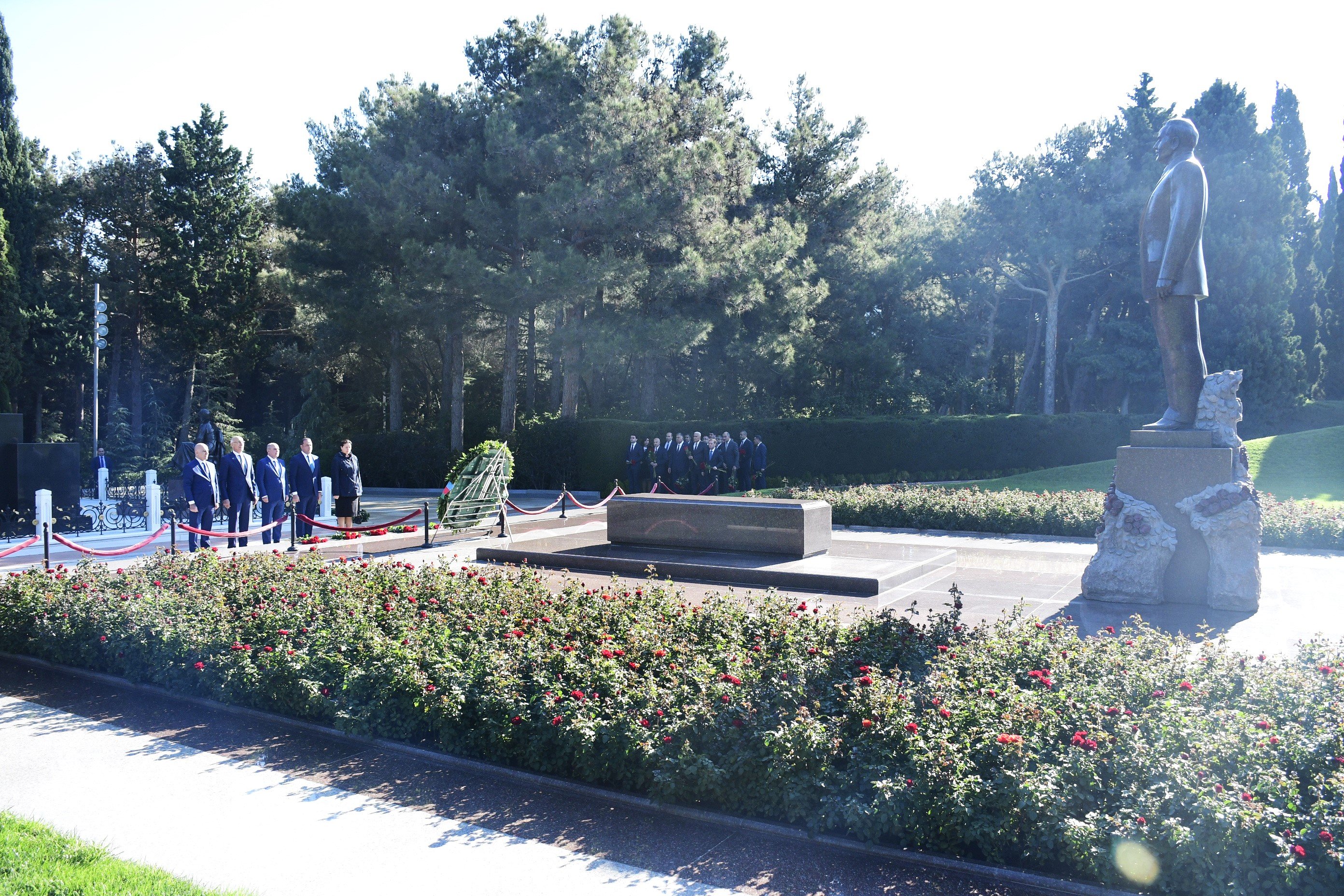 Əvvəlcə Fəxri xiyabanda müasir müstəqil Azərbaycan dövlətinin banisi, xalqımızın Ümummilli Lideri Heydər Əliyevin məzarı ziyarət edilib, məzarın önünə gül dəstələri qoyulub.