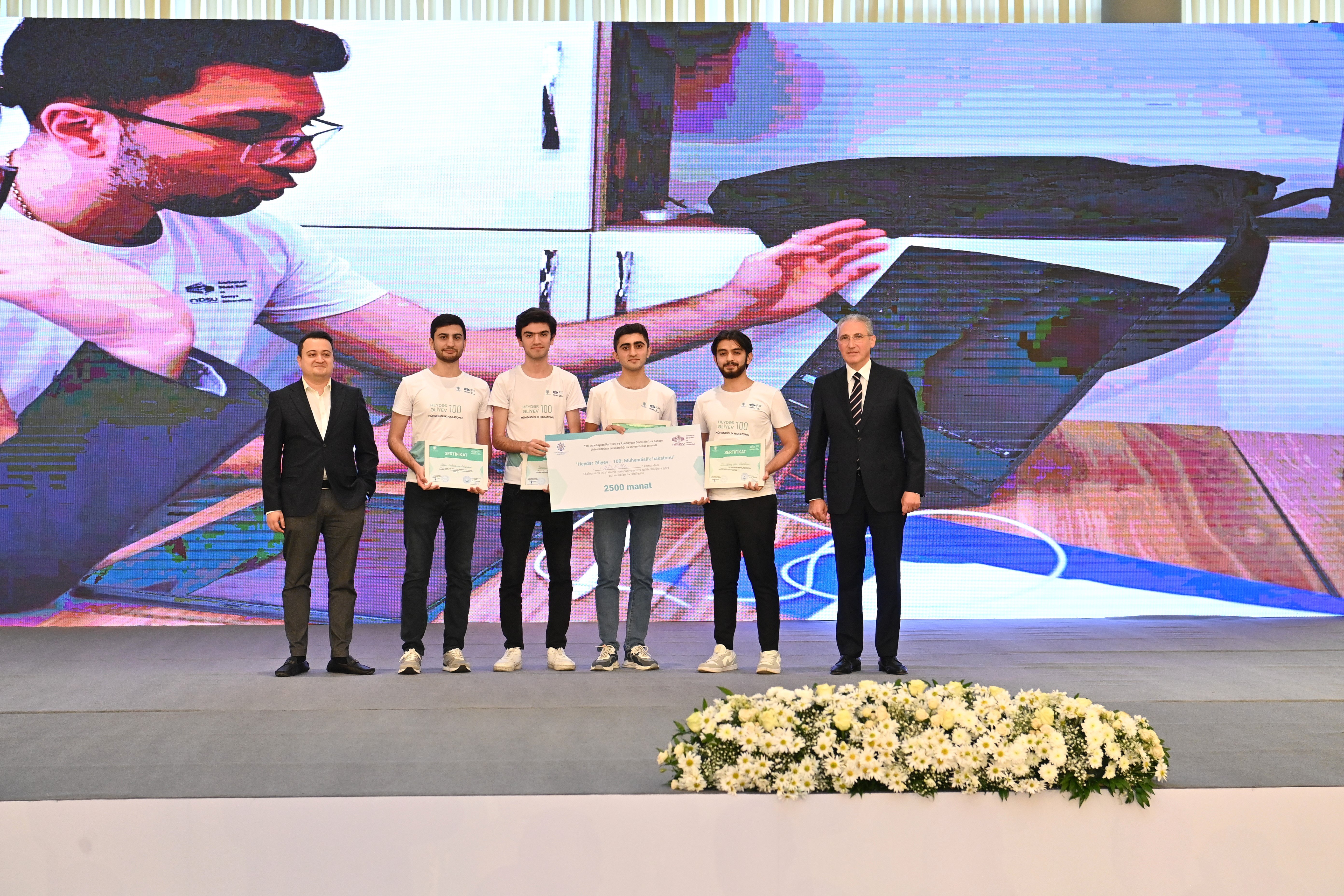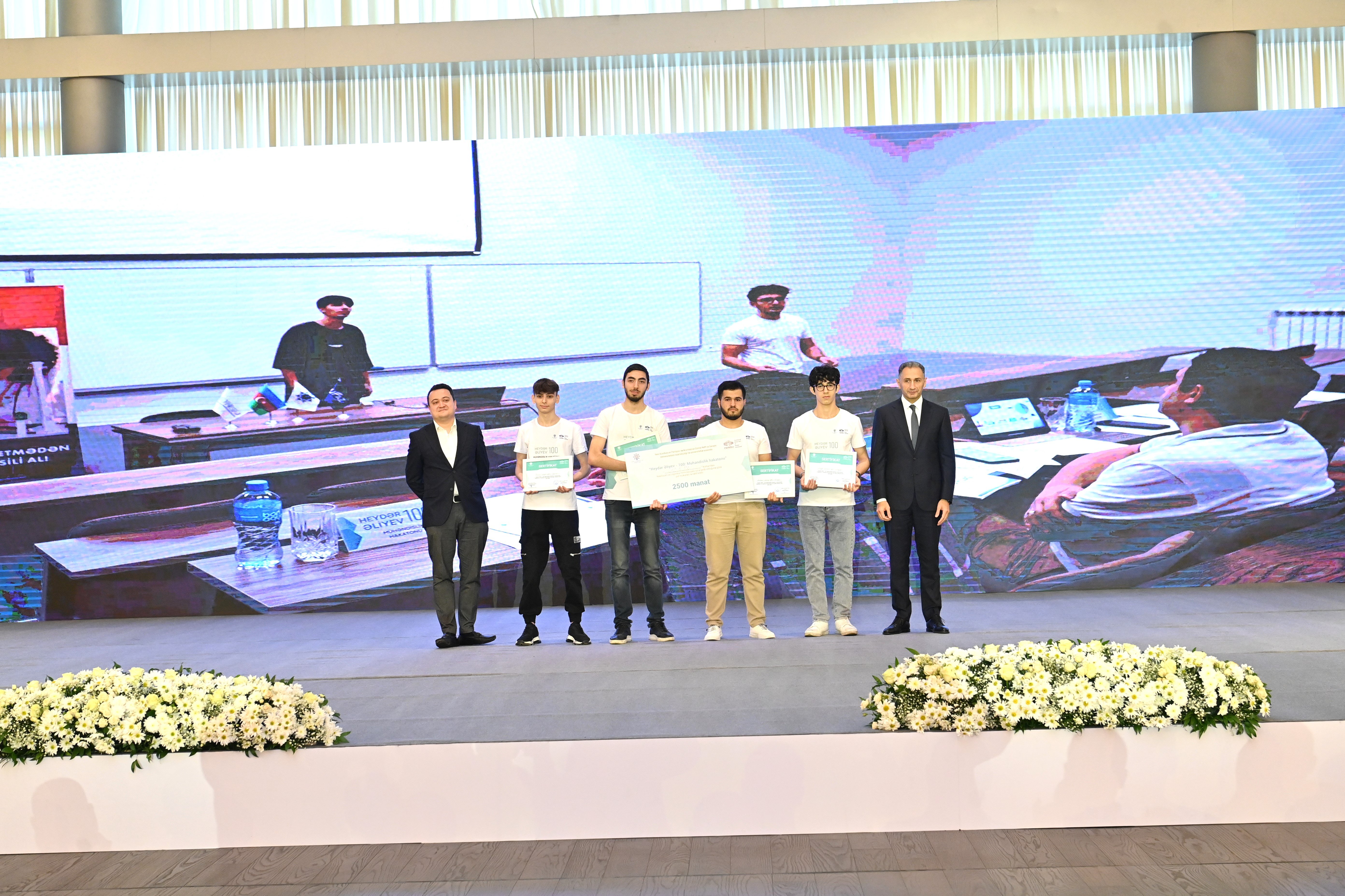 Sonra “Heydər Əliyev – 100: Mühəndislik hakatonu” intellektual yarışının qalibləri - Nəqliyyat və Logistika istiqaməti üzrə “Azərbaycan Dövlət Neft və Sənaye Universiteti - 2”, Ekologiya və Ətraf mühit istiqaməti üzrə “Azərbaycan Dövlət Neft və Sənaye Universiteti - 3”, İnnovasiya və Texnologiya istiqaməti üzrə "Bakı Ali Neft Məktəbi -1" komandaları mükafatlandırılıb.